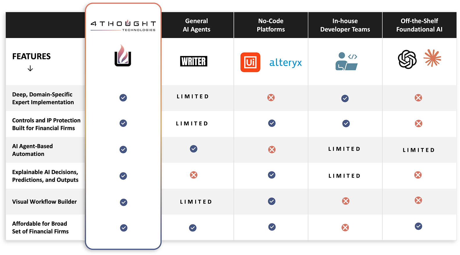Driven by this mission, 4Thought has built an elite intelligence team from leading financial and technology firms to bring world-class expertise typically reserved for large multinationals to financial firms at every stage.